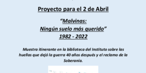 Proyecto para el 2 de Abril : «Malvinas: Ningún suelo más querido» Muestra itinerante en la biblioteca del Instituto sobre las huellas que dejó la guerra 40 años después y …